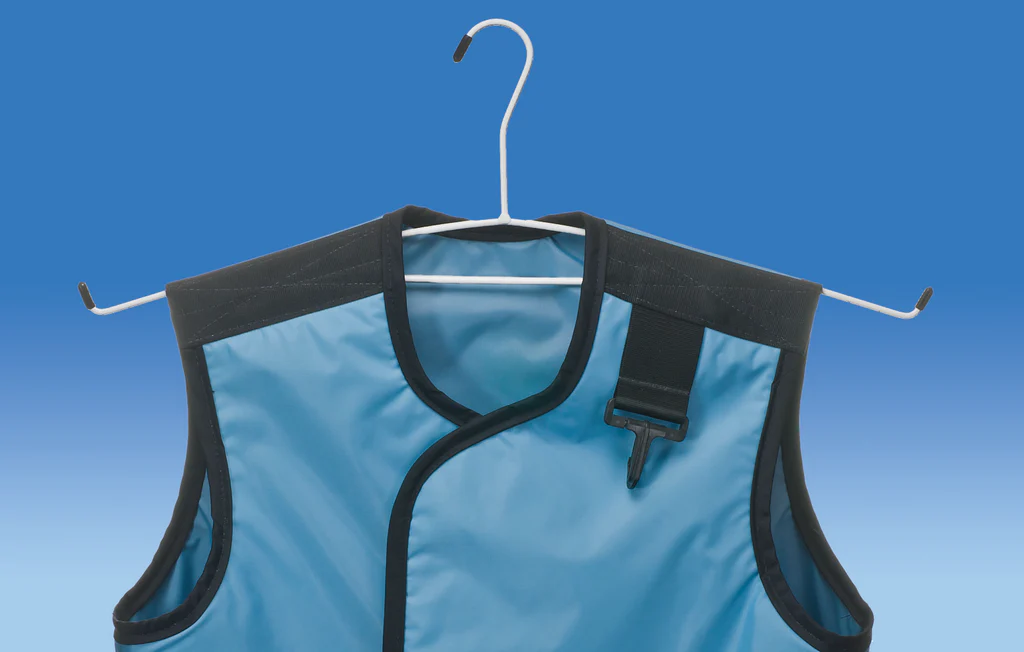 The Uni-Hanger allows you to hang any protective apron on a wall hook or in a conventional closet. The Uni-Hanger is 23½"W X 9"H.
