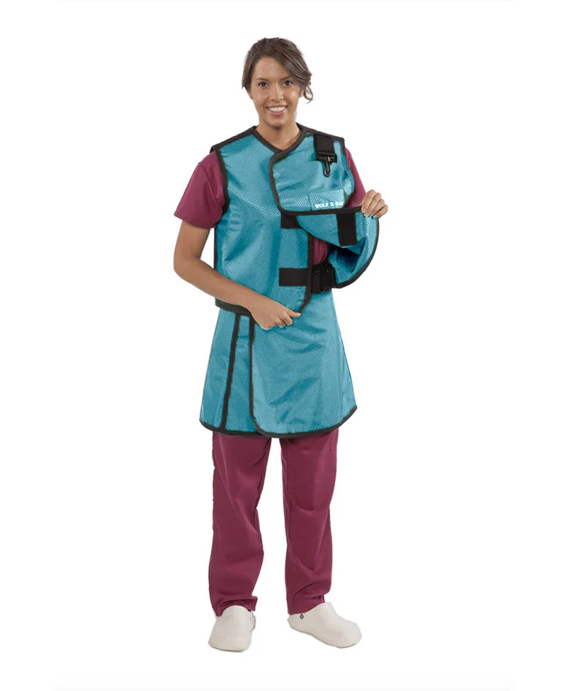 WOMEN'S APRON AND VEST : .5 mm Lead Free W/THYROID COLLAR VEST: 21X19 APRON: 19X30-34 Teal