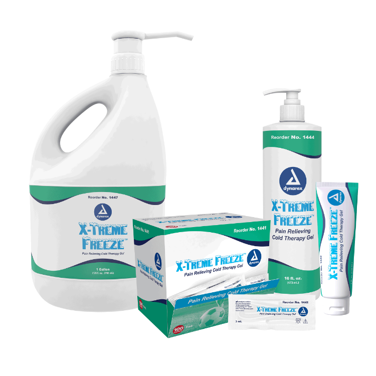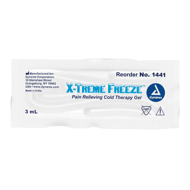 Dynarex X-Treme Freeze Pain Relieving Cold Therapy Gel provides fast-acting pain relief to allow users to continue daily activities. The mentholated formula alleviates pains associated with arthritis, backaches, strains and sprains.Dynarex X-Treme Freeze Gel is deep-penetrating, grease-free, and comes packaged in multiple sizes. Ideal for use in rehabilitation facilities, athletic training centers, schools, and at home.