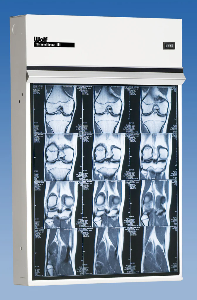 Should your needs require, Wolf offers the Trimline in a three-bulb version. The Trimline III offers 3 bulbs per each 14" x 17" viewing area providing, 4,000 Candela per square meter.