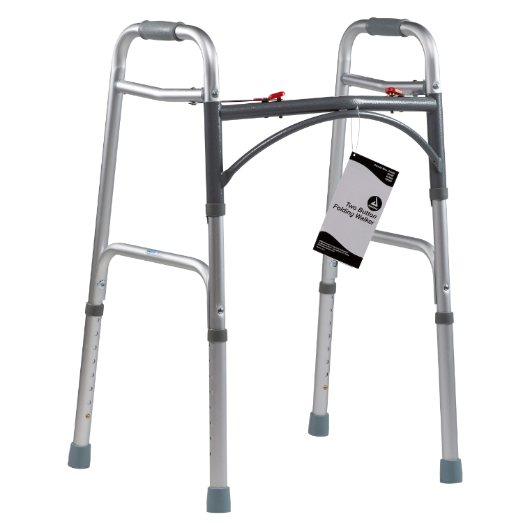 The Dynarex Two-Button Walkers are a safe, dependable solution for those who need a convenient aid while performing daily activities. The walkers open and close with an easy-to-use push button mechanism that may be operated by the user’s fingers or palms, and each side operates independently to allow for easy movement through narrow spaces. The tool-free button allows for height adjustments, raising and lowering the walker to accommodate any individual. The design is also inclusive of contoured handgrips for added patient comfort.
