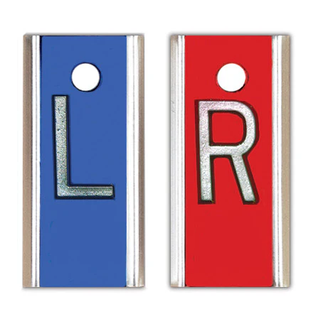 ELITE markers are color coded: R-Red / L-Blue and feature encased high density lead letters in aluminum casing for durability. Available with or without initials or numbers.