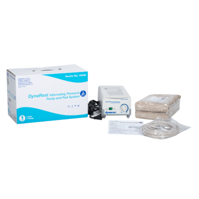The DynaRest Alternating Pressure Pump and Pad provides alternating pressure and is designed to be used in the treatment and management of pressure wounds. The bubble pad is constructed with 130 individual cells that are alternately inflated and deflated with the consistent air flow and pressure provided by the pump.The alternating Pressure Pad is made with a durable heavy vinyl and can fit over an existing mattress, using end flaps to hold the overlay securely in place.