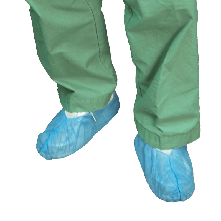 - Constructed from non-woven polymer material with sewn seams and elastic openings