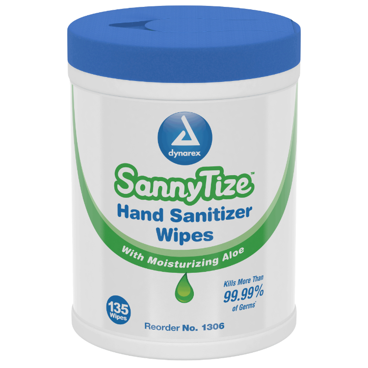 • 5" x 8" individually wrapped sanitizer wipes (1307) contain 75% ethyl alcohol