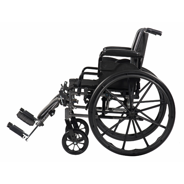 - Tool-free, adjustable, elevating leg rest or swing-away footrests with heel loops