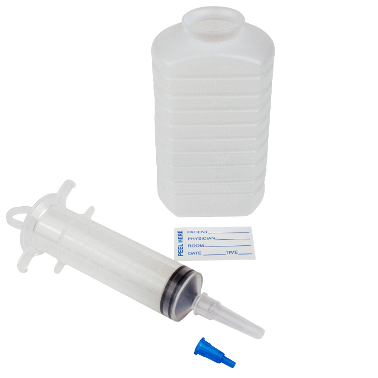 - Includes 500cc bottle, 60cc Piston syringe and small tube adapter